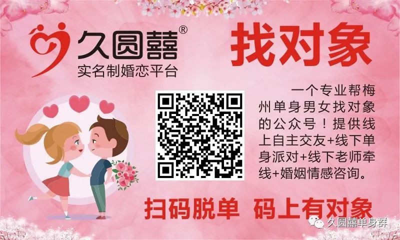活动形式:8分钟相亲会是一种便捷的单身交友方式,一般选择二十对左右的单身男女参与。每一个参加者都有机会所有参加活动的异性进行交谈,每一对交谈的时间被规定为 8 分钟。这样每个人都能够保证有机会和自己心仪的人谈话,同时又不会造成你被人缠住,不胜其扰。当然,最终目的只有一个——最短的时间,认识最多的异性。久圆囍“八分钟相亲”因其新奇的形式和高效安全的组织吸引了众多单身朋友踊跃参与。