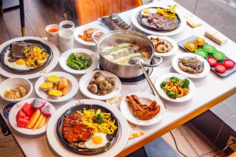 丰富搭配的自助美食